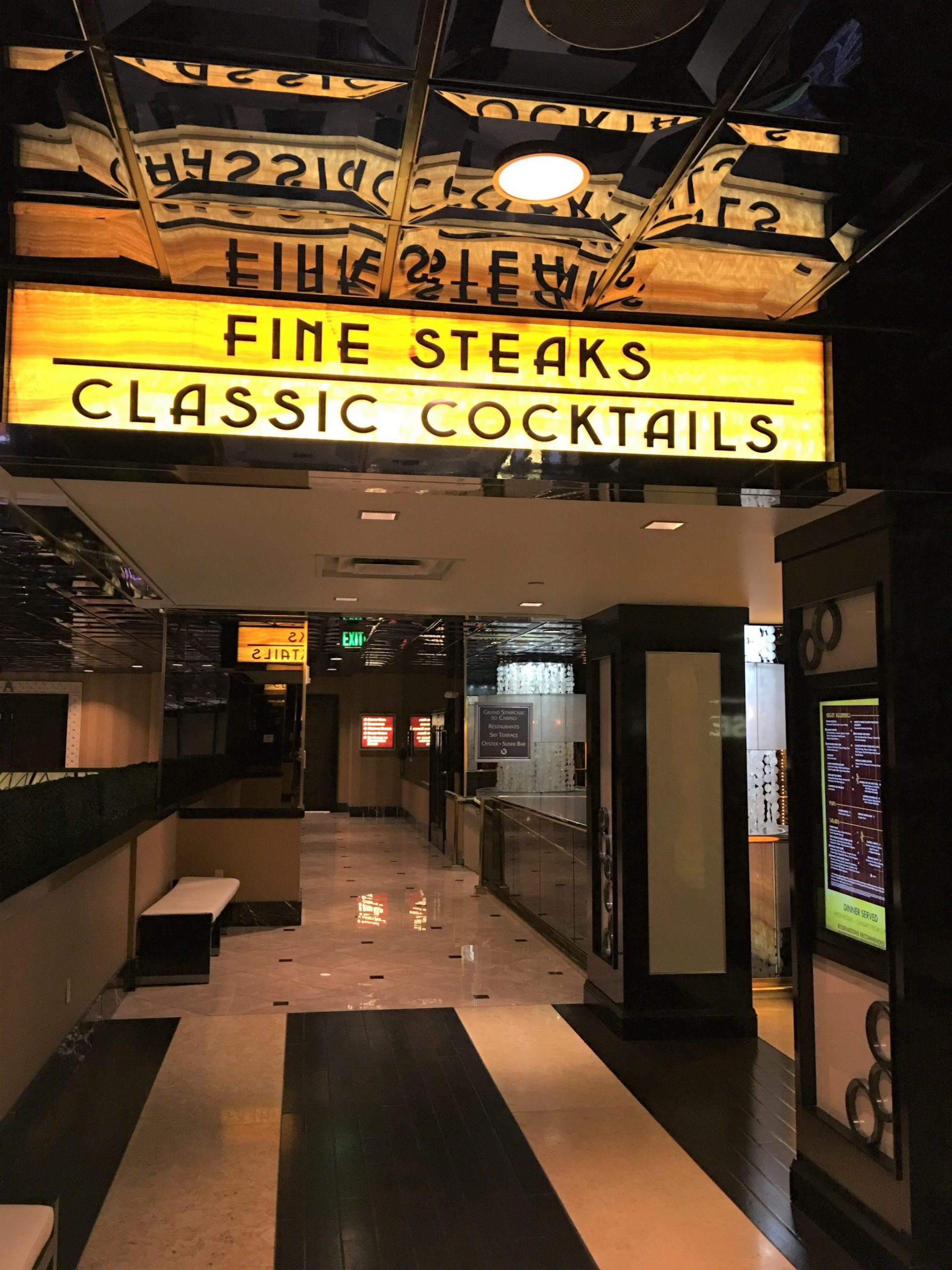 Atlantis Casino Resort Spaが誇るステーキ店、 Atlantis Steakhouse は洒落た雰囲気の中、上質ステーキを堪能出来るレストラン。お誕生日や記念日、自分へのご褒美、大切な方のおもてなし、などで訪れて期待を裏切らないお店です。お肉はシカゴの高級精肉店 Allen Brothersから取寄せたステーキも取り扱ってるそうです。