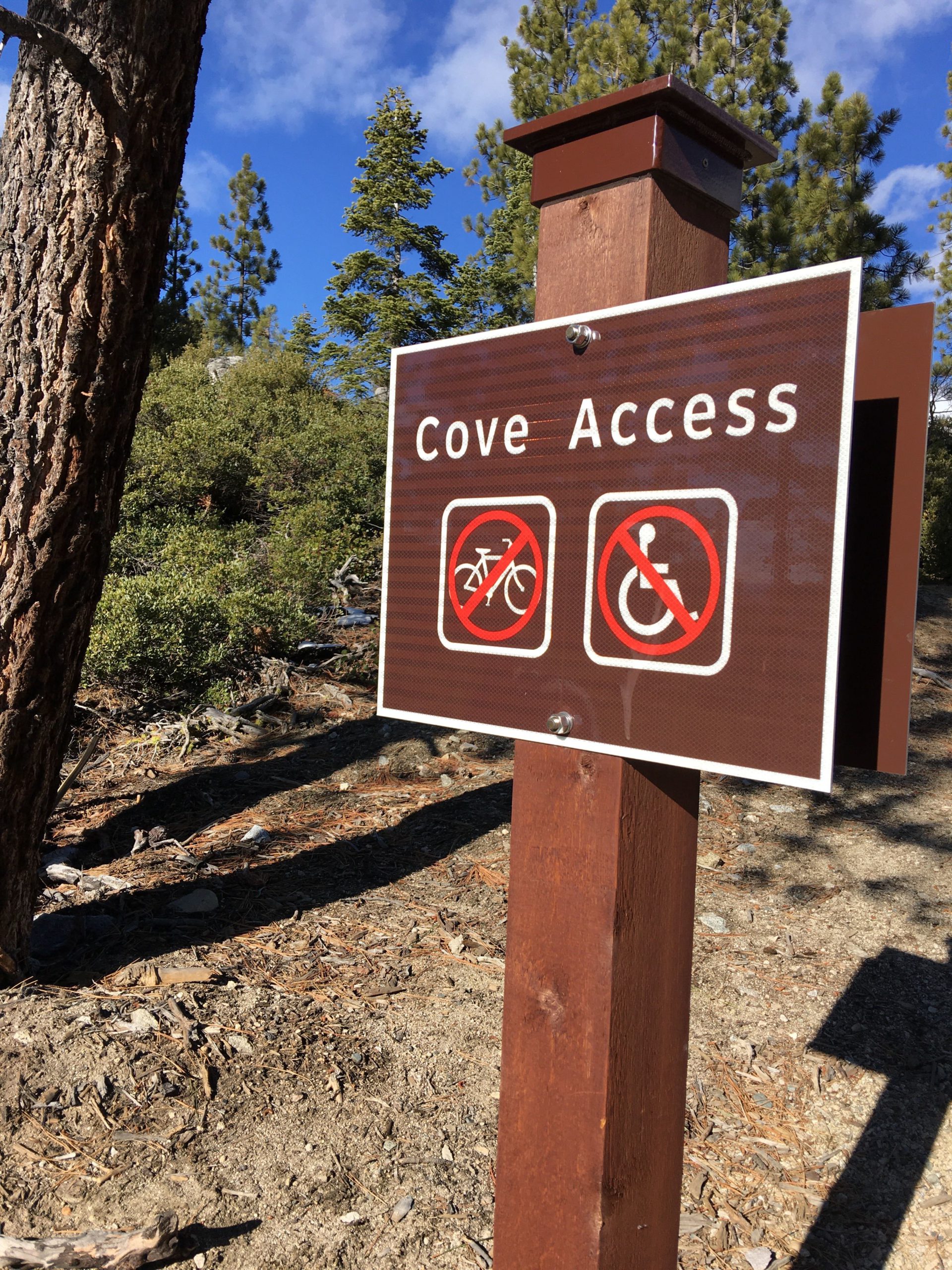 終点のSand Harbor州立公園の手前にあるCove(入り江)では湖岸アクセス、そして、高台からの展望、の両方が楽しめます。
