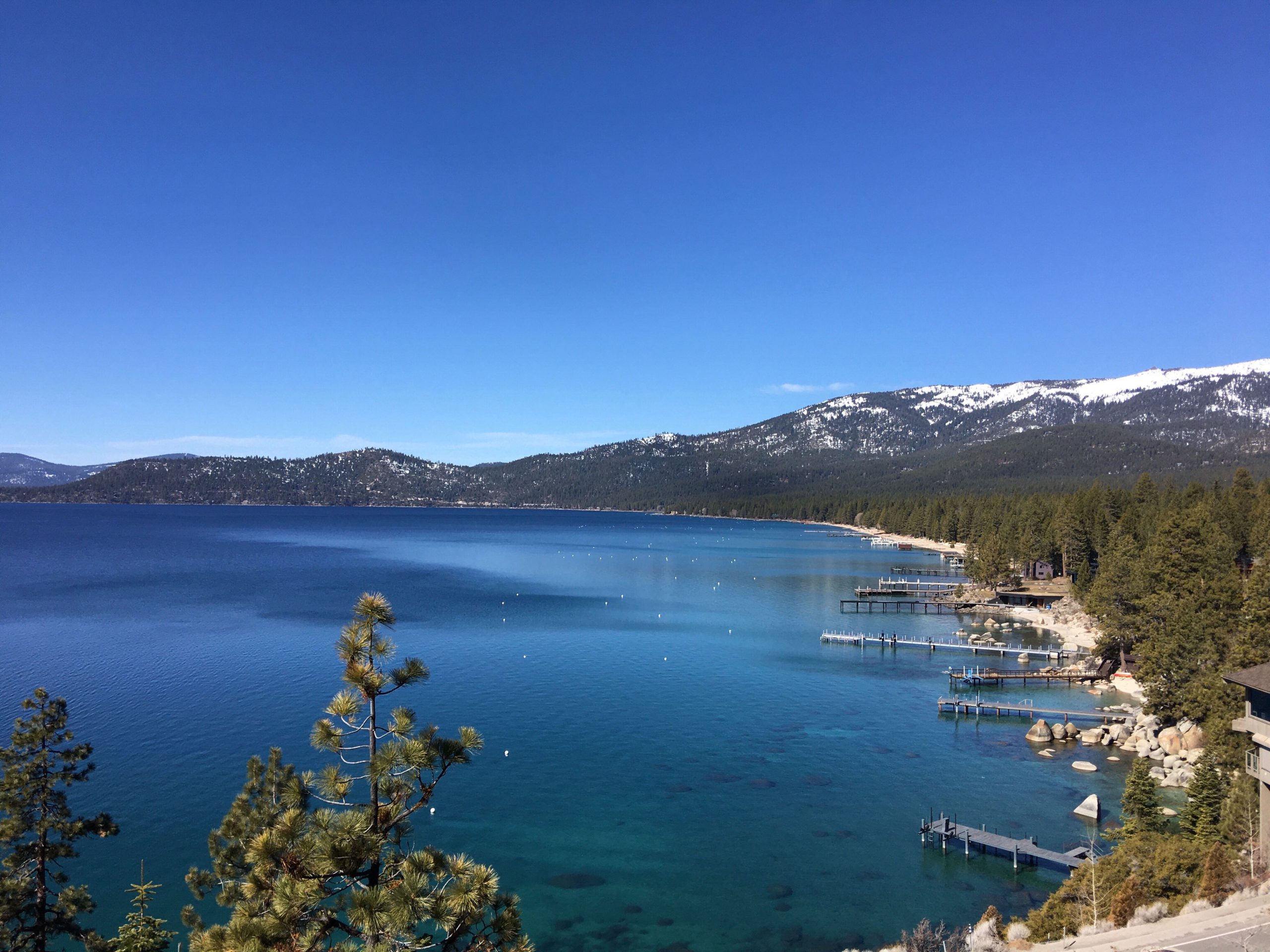 Harbor View Overlookへ。約5分程登った高台から見渡すタホ湖。綺麗。