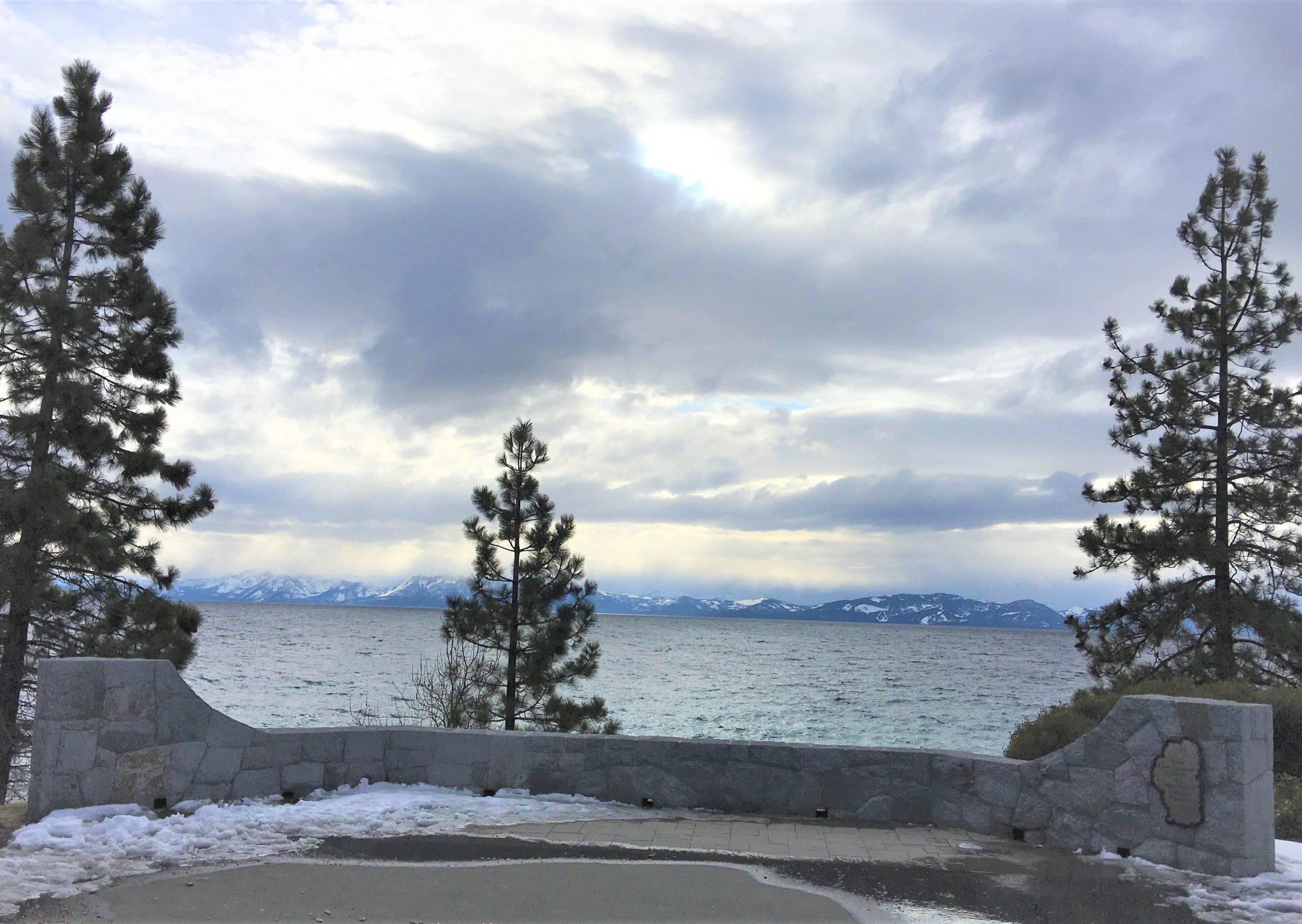 Harbor View Overlookへ。約5分程登った高台から見渡すタホ湖。綺麗。