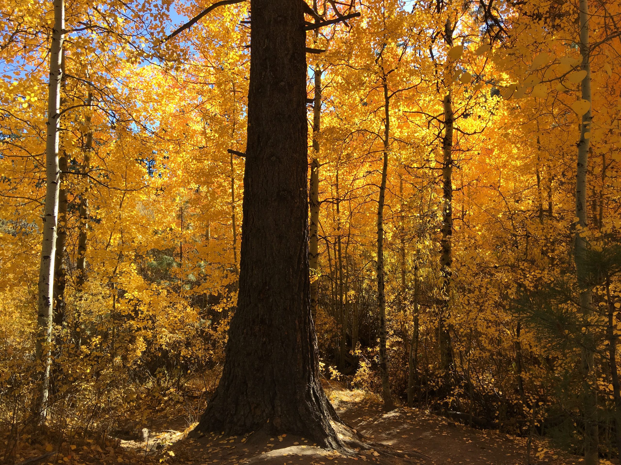 立派な松林。木々の間には時々チップモンク(縞リス)が現れるので周囲に目を配りながら歩きます。