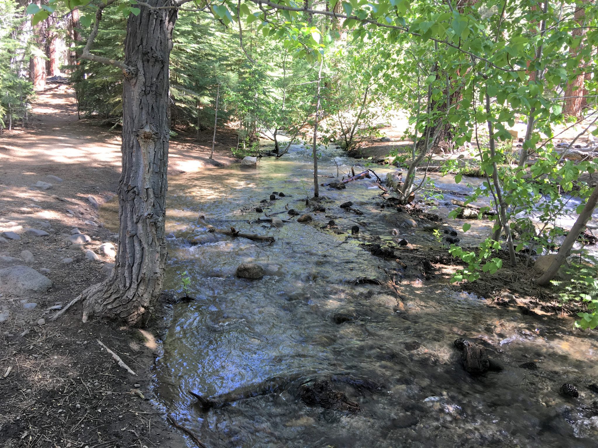Mt. Rose のふもとにあるワショ―郡立公園のGalena Creek Regional Parkの北側にあるWhite Creek Trailは毎年5/2~10/31のあいだ限定オープンする初級者向きトレイル。全体的に勾配は緩く、コースはループ状ではなく、White Creek沿いを行って折り返し戻るコースです。